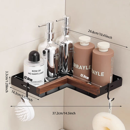 No-Drill Walnut Wall-Mounted Storage Rack – Fast Drainage & Strong Load-Bearing